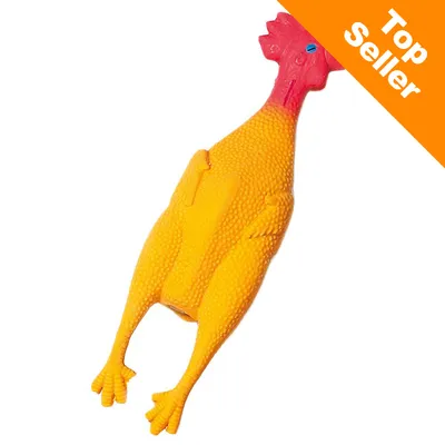 Rolig hundleksak, kycklingen piper högljutt när hunden biter i den, garanterat roligt, särskilt för unga hundar och eller hundar som gärna jagar efter leksaker, mycket tålig, av latex.Mer information
