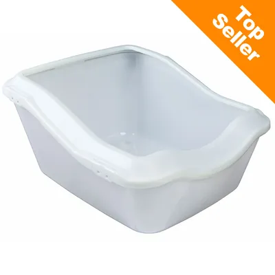 Kattlådan Cleany Cat är försedd med extra höga kanter samt en skyddsrand som förhindrar att sand och urin skvätter ur toaletten. Skyddsranden sätts enkelt fast med Easy-Clic spännen. I den här toaletten kan din katt krafsa av hela hjärtats lust utan att sanden sprätter ur lådan. Gummifötter förhindrar att kattlådan halkar omkring. Ingången är lägre för att katten ska kunna stiga in utan problem.Trixie Cleany Cat kattlåda med extra hög kant:
